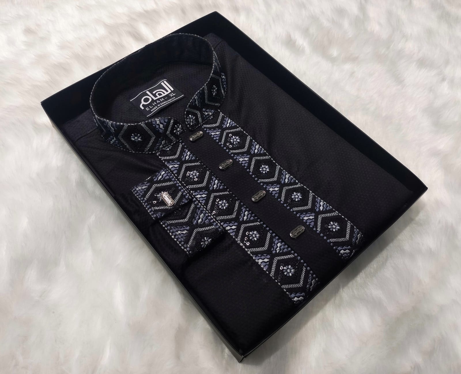 • কালো কাপড়ের উপর সাদা প্রিন্ট পাঞ্জাবী ৳ 980